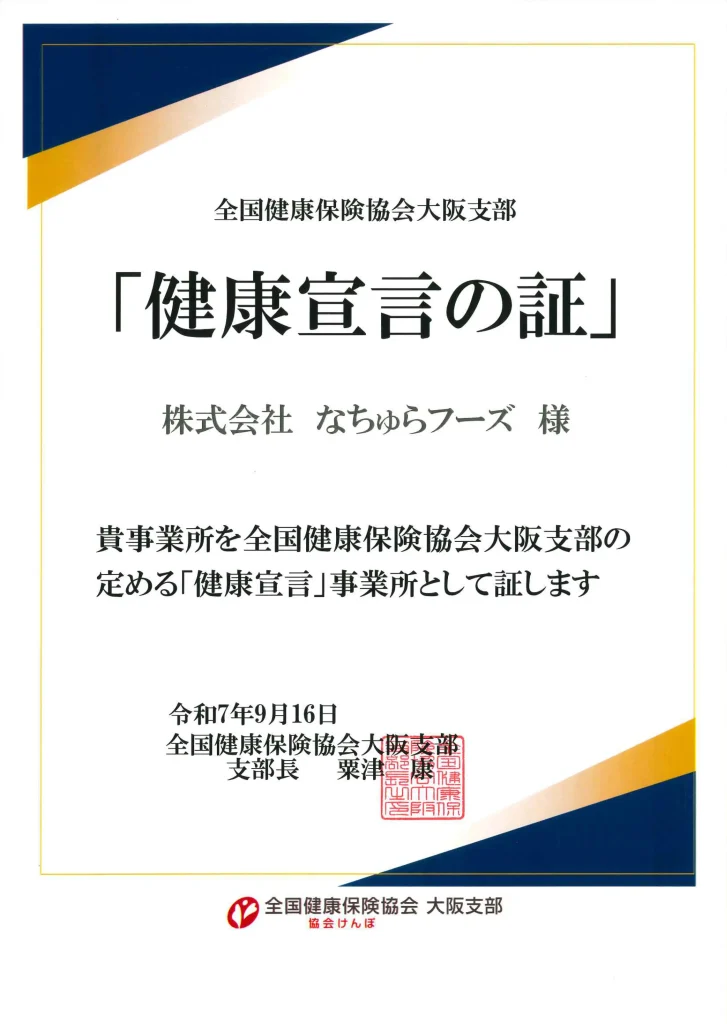 協会けんぽ大阪支部【健康宣言】に登録いたしました。