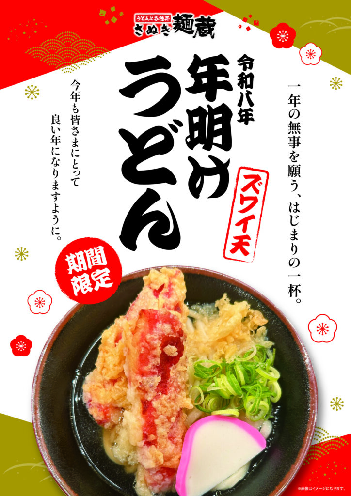 年始限定メニューとして『ズワイ天 年明けうどん』をご提案いたします。