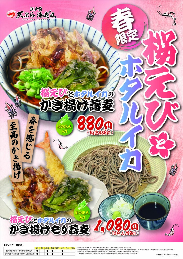 「桜えびとホタルイカのかき揚げ蕎麦」シリーズ を期間限定で販売いたします。