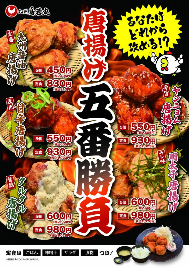 その日の気分で選べる「唐揚げ五番勝負」をぜひお楽しみください。