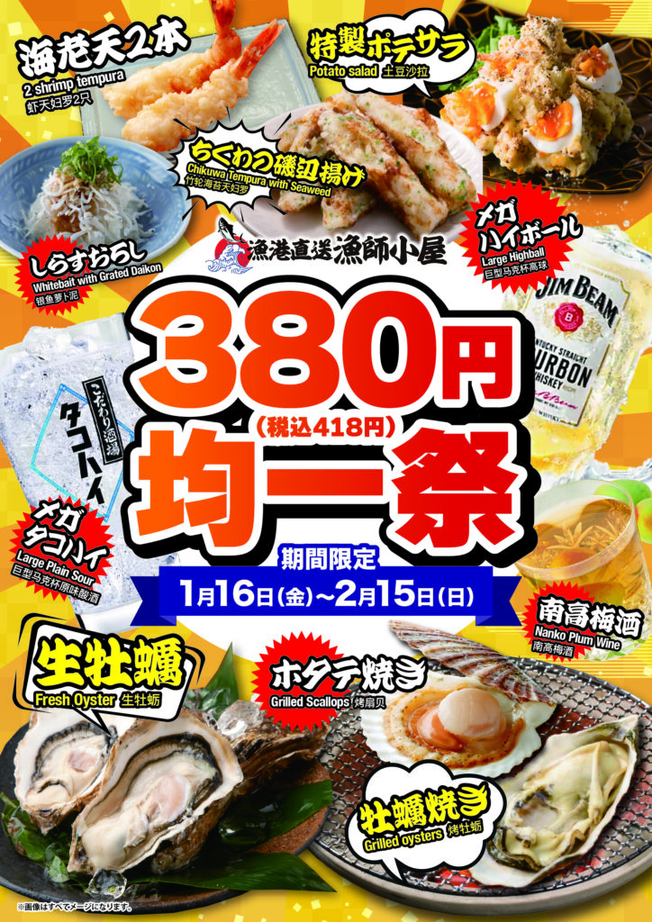 🎊 380円均一祭 開催!🍻 漁港直送漁師小屋 京都アバンティ店