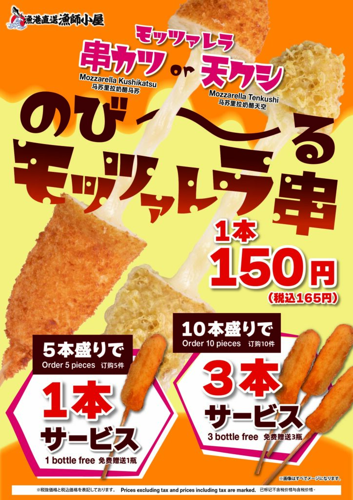 モッツァレラ串カツ or 天ぷらが今だけのお得なフェアで登場!
